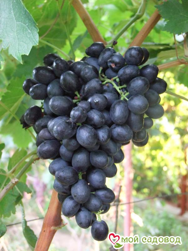 Магазин Мой Садовод, рекомендации по уходу Уход за виноградом сводится к регулярным поливам в сухую погоду, подкормкам и формированию куста. Для подкормки используют минеральные и органические удобрения (перепревший навоз, компост). Ранней весной кусты виноград поливают полным минеральным удобрением, растворенным в воде, перед цветением такую подкормку повторяют. Перед созреванием вносят фосфорно-калийные удобрения, а после сбора урожая проводят подкормку калием для повышения зимостойкости растений. Кроме того для лучшего вызревания лозы рекомендуется удаление пасынков и прищипывание верхушек в начале сентября. Формирование куста Винограда. Для формирования виноградных кустов необходимо установить надежную опору. Самая простая представляет собой два столба с несколькими рядами проволоки между ними. По мере роста побеги подвязывают к проволоке, задавая им нужное направление. Формирование куста винограда начинают с первого года, оставляя не более двух здоровых побегов у основания, остальные выламывают. На второй год на кусте оставляют по три почки на каждом побеге, на третий год на каждом плече оставляют 2-3 сильных побега, остальные удаляют.